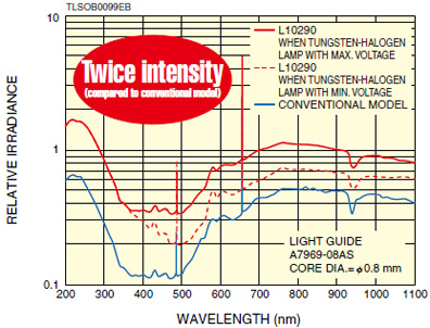 通過使用安裝在同一外殼內(nèi)的高亮度氘燈和鹵鎢燈,該光源能通過光波導(dǎo)(單賣)輸出200nm到1600nm的光。輸出的光強(qiáng)大約是現(xiàn)有型號(hào)的兩倍。緊湊的尺寸和較輕的重量使其易于攜帶。機(jī)械快門和外部控制等實(shí)用的功能使其易于使用。這種新型光源同時(shí)適用于多種型號(hào)的便攜式設(shè)備。