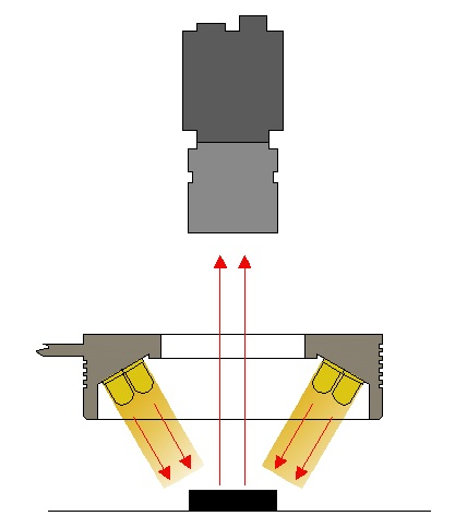環(huán)形光源由高亮LED陣列特殊設(shè)計(jì)而成,光源角度以中心垂直線為基準(zhǔn),提供多種不同照射角度選擇,適應(yīng)于檢測物體的邊緣清晰特征,突出感興趣的被測物體信息,解決對角照射陰影問題。