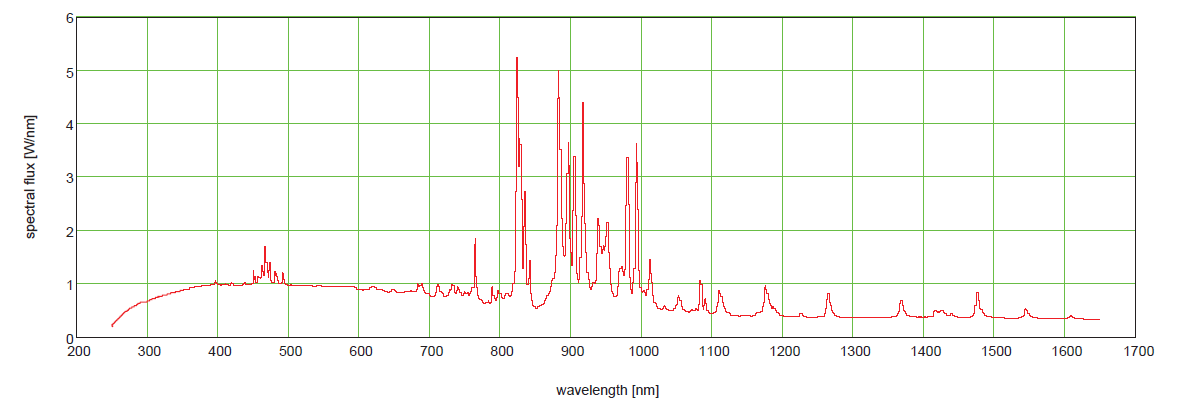 長弧氙燈是一種在管狀石英泡殼內(nèi)充有適量高純度氙氣、二端封有距大于 100mm的釷鎢、鋇鎢或鈰鎢電的氙燈。長弧氙燈有自然冷卻和水冷兩種。自然冷卻氙燈一般充 (2.66~26.6)×10^2Pa的氙氣,水冷氙燈充(1.33~5.32)×10^4Pa的氙氣,色溫為5500~6000°K,功率可從10^2~2×10^6KW,發(fā)光效率為24~37lm/W。水冷式長弧氙燈的發(fā)光效率可達(dá)60lm/W,一般壽命達(dá)3000h。引線方式區(qū)分為單端和雙端引出兩種,長弧氙燈發(fā)出的光和太陽光光譜很接近,其波長范圍主要在290NM-800NM之間,燈管采用美國進口的管材。