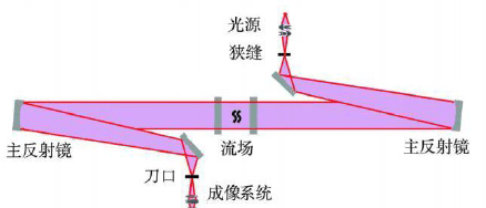 紋影儀是根據(jù)光線通過不同密度的氣流而產(chǎn)生的角偏轉(zhuǎn)來顯示其折射率,是一種測量光線微小偏轉(zhuǎn)角的裝置。它將流場中密度梯度的變化轉(zhuǎn)變?yōu)橛涗浧矫嫔舷鄬鈴姷淖兓,使可壓縮流場中的激波、壓縮波等密度變化劇烈的區(qū)域成為可觀察、可分辨的圖像。