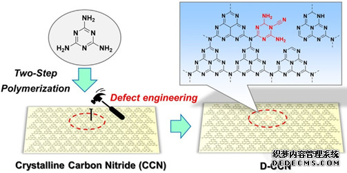 近年來,氮化碳晶體(CCN)基半導(dǎo)體在太陽能轉(zhuǎn)化領(lǐng)域吸引了研究者大的關(guān)注。然而,如果想進(jìn)一步提高CCN的性能就需要在高結(jié)晶性和良好的光催化性能間做出平衡。本文中作者利用缺陷工程思想對(duì)CCN光催化劑進(jìn)行了修飾設(shè)計(jì)。
