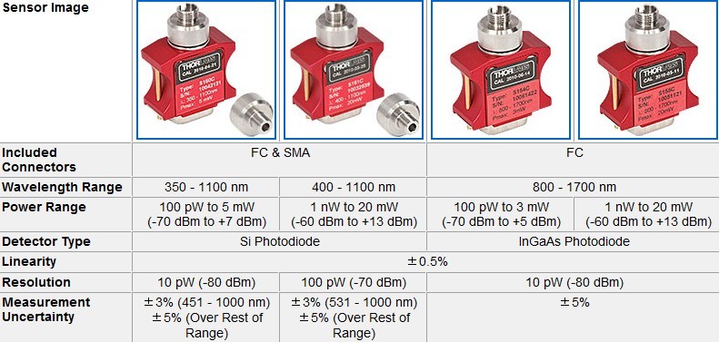 M520 幾乎與所有的功率和能量探頭相兼容(光電探頭,熱敏探頭,熱釋電探頭),應(yīng)用于從紫外到中紅外波段的檢測(cè)。它將光電探頭(超薄型, 積分球型, 光纖型)輸出電流從10 pA到5 mA間劃分了6個(gè)量程,對(duì)熱敏探頭的熱電電壓從100 nV到1 V劃分為4個(gè)量程,兩者都可自動(dòng)或手動(dòng)設(shè)置。表頭對(duì)熱釋電探頭的電壓從100 μV 到100V有4個(gè)手動(dòng)可調(diào)量程,觸發(fā)電平可調(diào)節(jié),范圍從0.1%到99.9%。 用戶可以使用定制的探頭,并上傳一個(gè)響應(yīng)曲線來進(jìn)行光譜響應(yīng)校正。此外該表頭還配有一個(gè)USB2.0接口可用于遠(yuǎn)程連接控制。以下概述了所有兼容的探頭和適配器。