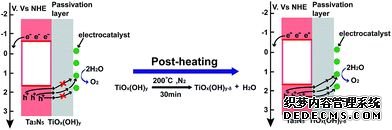 在對(duì)TiO2鈍化層的研究中,羅文俊課題組通過化學(xué)浴沉積的方法在Ta3N5上制備了一層TiO2,并且發(fā)現(xiàn)水溶液法制備的TiO2中含有的羥基基團(tuán)會(huì)影響電的性能。