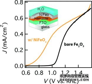進(jìn)一步研究表明,這是由于NiOOH/電解液接觸界面可以導(dǎo)致一個(gè)更合適的亥姆霍茲層電位降。因此通過 構(gòu)筑BiVO4/FeOOH/NiOOH 雙層電催化劑,優(yōu)化半導(dǎo)體/電催化還有電催化/電解液的界面,使得BiVO4光陽的性能得到了大幅的提升。在此研究后,F(xiàn)eOOH/NiOOH雙層電催化劑幾乎已經(jīng)成為了釩酸鉍電不可缺少的部分。